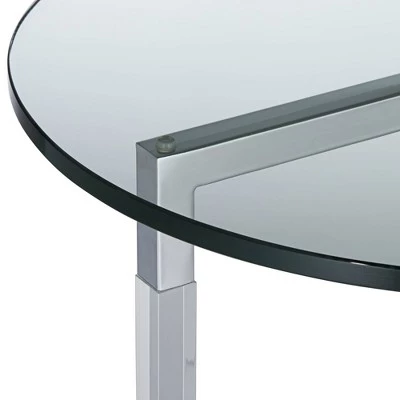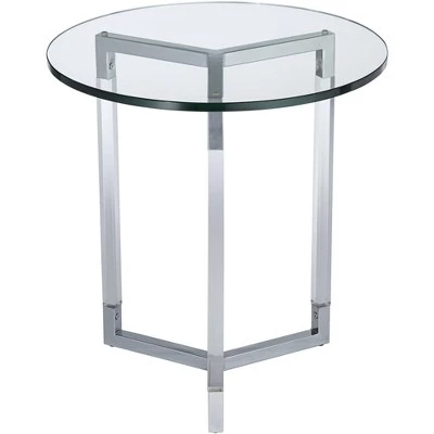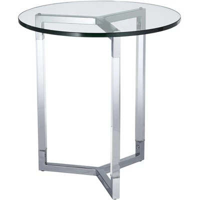 Add a modern touch to your bedroom or living room with this round accent table. The frame consists of chrome finish acrylic legs, coming together to form an eye-catching criss-cross pattern, and the top is made of clear tempered glass. Simple yet stylish, this accent table adds character to any setting.