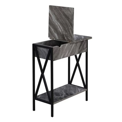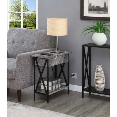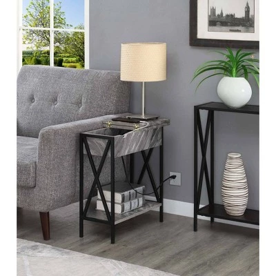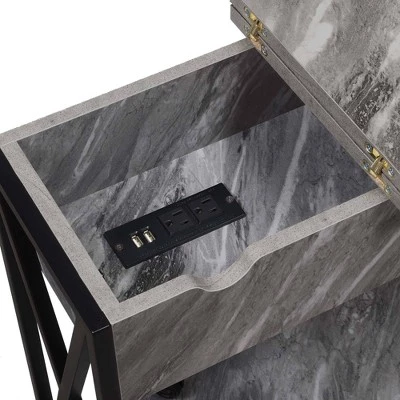 Cheap 🀩 Tucson Flip Top End Table with Charging Station and Shelf Gray Faux Marble/Black – Breighton Home ❀️