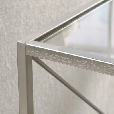 - Metal frame features brushed nickel finish.Crossbars for stability.