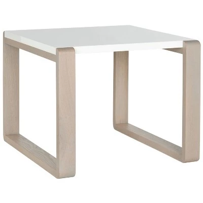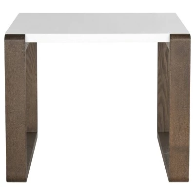 Rugged meets refined in the contemporary Bartholomew end table with sleek white lacquer top and chunky wood grained base in a chic finish. In homes from coastal to urban, this dramatic console will command attention in a living room or den. Constructed from MDF wood, the Bartholomew coffee table is able to support up to fifty pounds. The simple design makes it a piece that is easy to style and match. The Bartholomew coffee table is the perfect addition for Contemporary, Mid-Century or Modern style rooms.