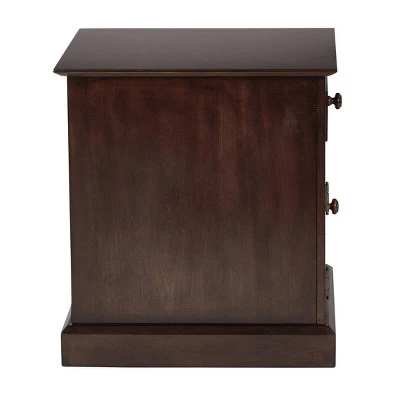 The OSP Designs Colette, Chair Side Table is the perfect combination of form and function. A deep drawer, large cabinet and handy magazine rack give you all the space you need to conveniently and discreetly store your family’s remotes, games, DVDs, books and more. The slim design allows this end table to easily slip beside your chair or couch while still giving you an ample amount of tabletop surface space. A timeless design makes it a great addition to your contemporary or traditional home décor. The sturdy wood construction, button pulls and rich walnut veneer enhance durability for years of use. Assembly required. Dimensions: 22.25″ H x 15.75″ W x 20″ D.