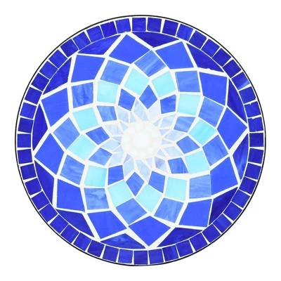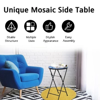 Lighten up your indoor and outdoor occasions with our mosaic side table! . The side table comes with beautiful mosaic pattern and ceramic tile top that add a unique charm to your home. It is smartly made to be placed at any small spaces like the corner of your patio or perfectly fit any large space. Folding design also brings much convenience to store and carry around. The steel construction with anti-rust coating makes this table sturdy and durable. The table can be also used for plants to decorate your space or placed beside the sofa as a side table. . Moreover, it is a perfect choice to set a coffee when combined with a chair to create a cozy area. . Specification: Color: Light BlueDark Blue. Material: Steel, Ceramic Tile. Overall Dimension: 14” (L) x 9” (W) x 22” (H) . Net Weight: 13 lbs. Weight Capacity: 99 lbs. . Package includes: . 1 x Mosaic Side Table. 1 x Instruction.