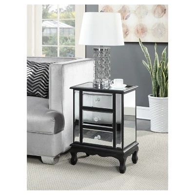 - Mirrored end table with stacked drawers