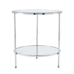 Master the 1920’s scene with the Aiden Lane Ric End Table. The sleek metal frame houses a wide-beveled glass tabletop and black glass shelf. Glamorous dreams come to life with this round side table.