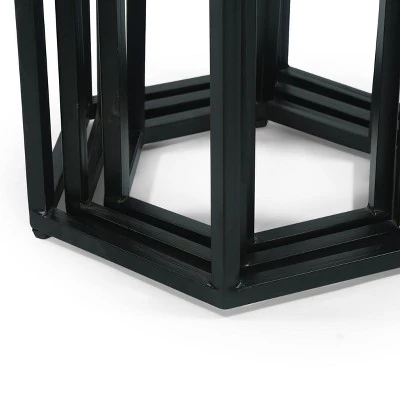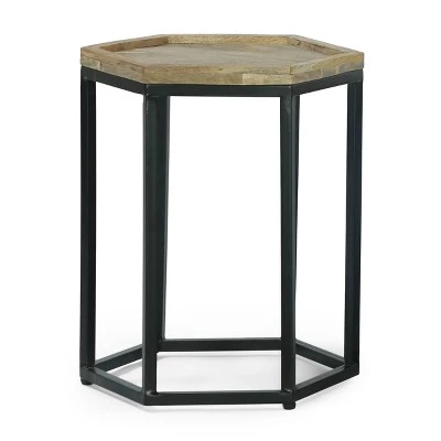 MODERN INDUSTRIAL: Our side table set incorporates powder-coated iron frames with rich wood tabletops to create an understated modern industrial design. Featuring a hexagonal lip edged tabletop and a minimalistic base, each table offers a chic aesthetic to any home.