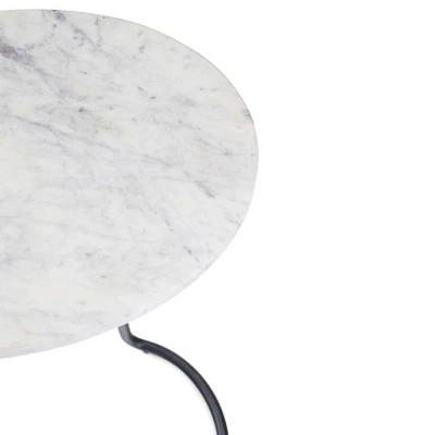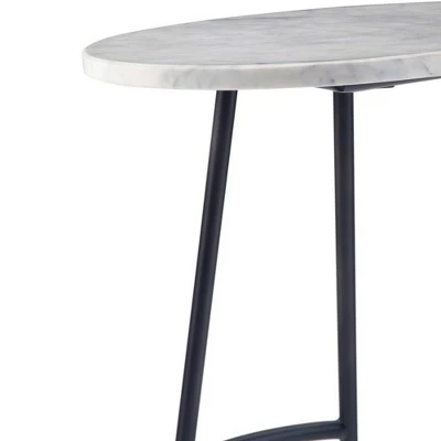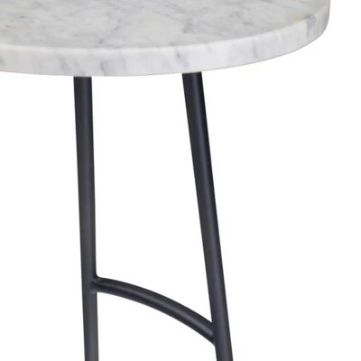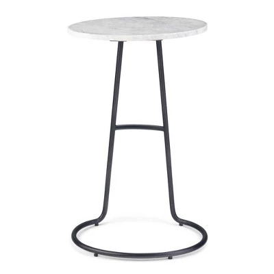 Sleek and airy, the Trisha Side Table adds big style to small spaces. The C shaped metal base with black finish mixed with a solid marble top fits smoothly into most modern, contemporary or eclectic home designs.