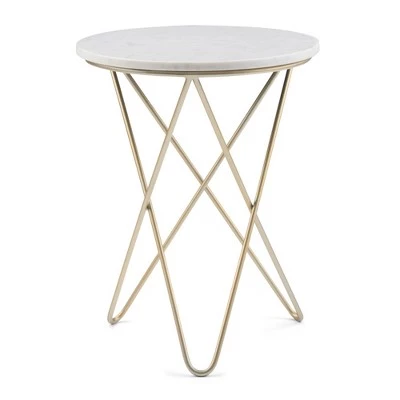 The Rivley Accent Table is a whimsical accent table that can be used in any room in your home. Beside a chair or sofa it is a great side table, beside your bed it becomes a nightstand or in your office, itβs a great place to put your cup of coffee. With its gold metal criss cross hairpin legs and its durable marble top, the Rivley is a modern decorative table that accents your home beautifully