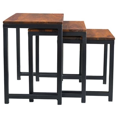 Get the well-loved look of repurposed wood and industrial feel of iron with the Reclaimed Sheesham Wood and Iron 3pc Nesting Table Set in Natural from Timber girl. The accent tables can be pulled out when company comes.