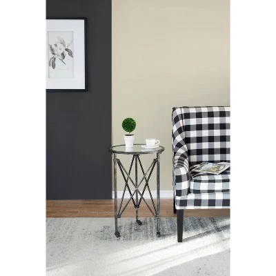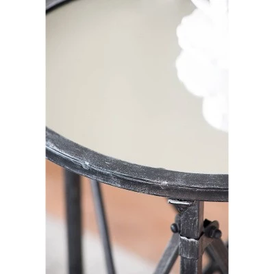 Easy to move and store as needed, the Gilbert Side Table from the Signature Collection by A&B Home Collection offers a versatile furniture solution for small spaces. This piece features a round top and antique silver finish for an adaptable aesthetic that works well with a variety of dΓ©cor themes. The top is glass, smooth and easy to clean. This item belongs to a collection of items created and designed by A & B Home, Inc., a family owned business founded in 1993. A & B Home Inc. is recognized as an international leader specializing in quality products with innovative design for the home decor, furniture, garden, and seasonal product categories.