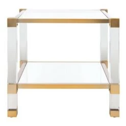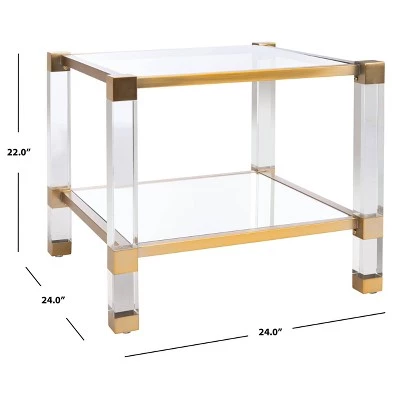 Modern muse. Inspired by the first reigning runway divas, the Angie End Table brings style, substance, and character to any room. Brass, glass and acrylic details conjure the grace, charm and decadence of those who embodied the lust for life. The cool mod design and bright elegant details of this end table makes it a perfect addition for contemporary, modern, or transitional rooms. It is available in multiple colors to best suit your personal tastes and decor.