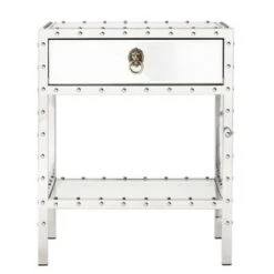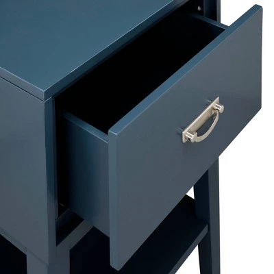 If you need a space to display a lamp or somewhere to set down you drinks, you will love this Burnett Accent Table from Inspire Q. This side table is the perfect blend of classic and contemporary style and features a single spacious drawer. Outfitted with dovetail slides and a shiny nickel drawer pull, the drawer is easy to open and close. Utilize the drawer to store your belongings or use the lower shelf to display your home dΓ©cor, books, or magazines. Place this accent table in your living room or bedroom for functionality and style.