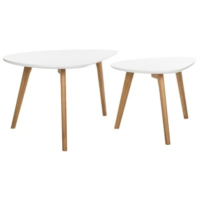 The ultra-mod furnishings that outfit Ibiza’s most sought after lounge inspired this contemporary double coffee table. Each of its two tables feature clean, modern lines with white and natural wood finishes. Ideal for the lifestyle of the modern nomad. Crafted from White Oak Lumber with a PU finish, this sturdy set of coffee tables are able to hold up to twenty pounds. The Olida coffee table is the perfect addition for Contemporary, Modern or Transitional style interior.