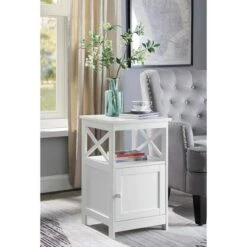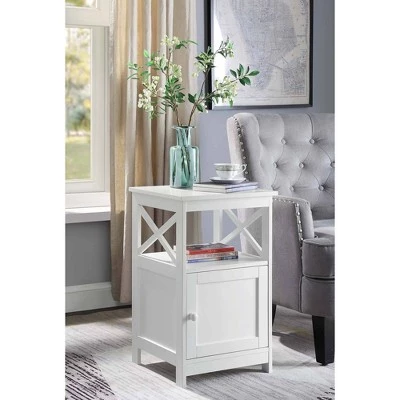 Make the most out of family gatherings with the Oxford End Table with Storage Cabinet and Shelf by Breighton Home. Its unique versatile design will ensure you have everything you need within reach. Provides an ample table top for your favorite lamp and a bottom shelf to store your favorite books. With its cabinet you will be able to keep all entertainment essentials out of sight. This accent table is not only multifunctional, but it is also very stylish. Showcasing a contemporary design with its clean lined silhouette, geometric side panels and shaker door, this storage end table is the must have piece your ensemble is begging for. Constructed of MDF and finished with a non lead based paint, this cabinet end table is sturdy and easy to maintain. Enjoy right after delivery with its easy 9 step assembly and place in your living room, den or home study. This side table comes in multiple finishes. Find more furniture pieces by Breighton Home. Each sold separately.