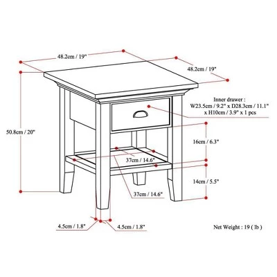 Good things really do come in small packages. Nothing could illustrate this better than the design of our Mansfield End/Side Table which features one drawer and open bottom shelf providing plenty of storage space. The table is sized perfectly to allow room for a table lamp, book and family photos. A perfect companion to any sofa or arm chair. This flexible piece can also be used as a bedside table or in multiple other settings.Efforts are made to reproduce accurate colors, variations in color may occur due to computer monitor and photography.