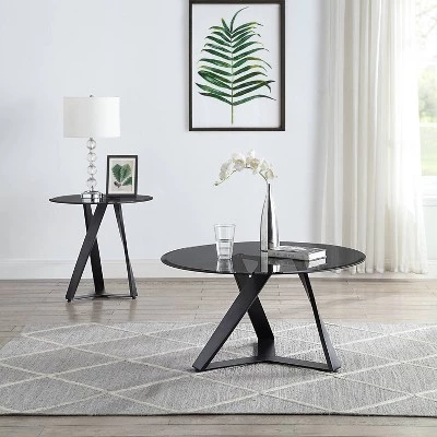 This artistic living room set acts as a conversation started in your modern home. A juxtaposition of the calm round tabletops and the twisted three-leg base frames are pleasing to the eye. The round tabletops are 8mm gray tempered glass with beveled edges. Their structural integrity is ensured by this hardened safety glass and the scratch and dent-resistant black powder-coated steel frames. In as little as two steps for each piece, you can assemble this set and update your home in no time.