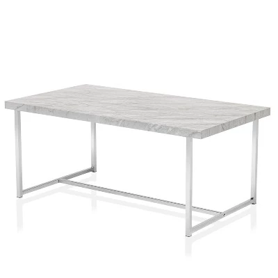 Brighten up your living room or den with this 3-piece contemporary coffee table set featuring coffee table and two end tables. Each chrome and white table is fashioned from steel, MDF, and marble PVC for a charming mix of tones and materials. The tops feature marble grain accents while the gleaming U-shaped legs and base include a support beam for stability.