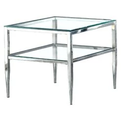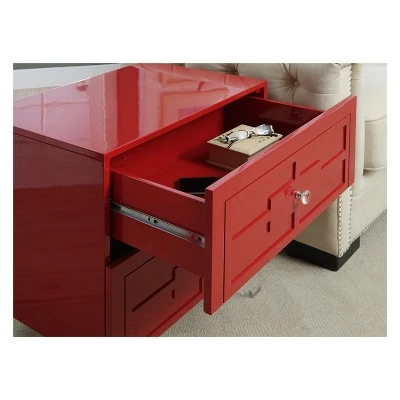 Add glam infused yet soft subtle charm to your space with the Inhumes Aleman Contemporary Side Table from HOMES: Inside + Out. This compact side table is the perfect space to place a lamp and other decor to dress up and illuminate your space. This two-drawer table features crystal-like acrylic knobs for a stunning accent, and you’ll love the floating effect from the clear acrylic legs. Pieced accents on its drawer fronts add geometric style.