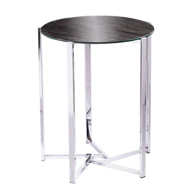 - Chrome finish with black faux marble glass