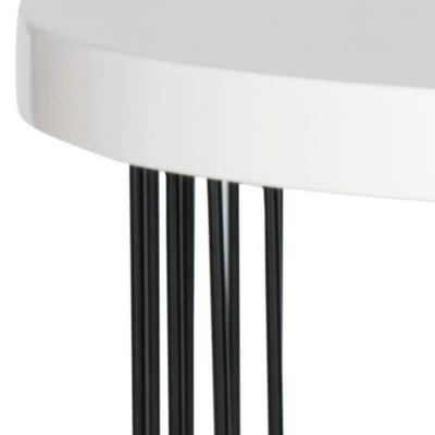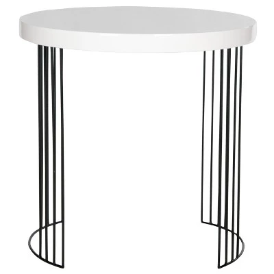 A nod to plane geometry, the round Kelly lacquer side table creates a crisp contemporary statement beside a sofa or chair. This chic table is crafted with two half-circle rows of black iron legs, and topped with lacquer for luxurious shine. The simple and decorative structure of this side table calls for simplicity and elegance. Crafted from iron and MDF wood, this table is able to support up to thirty pounds. The Kelly side table is the perfect choice for Contemporary, Mid-Century, or Modern style rooms.