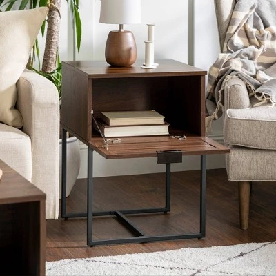 Bring eclectic fashion to your bedroom with Saracina Homeβs Simon Boho Slat Door Nightstand. Use its top surface to display all your bedside essentials, from lamps to speakers. Stow away extra phone chargers, notebooks, and knick-knacks within the slatted-door closed storage cubby. The boxy metal legs and peek-a-boo door make for a poised, modern boho end table that will enhance its surroundings.