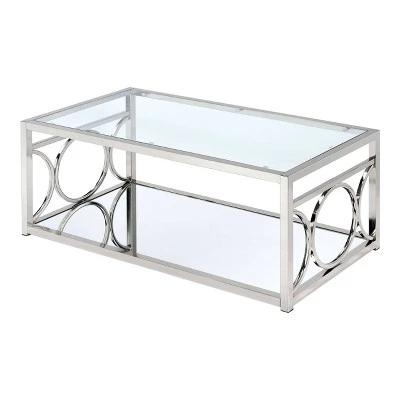The Furniture of America 3-Piece Nora Circle Accents Table Set in Chrome is an elegant design thatβs sure to dress up your living room in chic style. Crafted of a durable metal construction with a metallic finish, this set features O-ring side panels for added appeal. Boasting transparent 8mm tempered glass tops and coming complete with 3mm mirrored bottom shelves, the Furniture of America 3-Piece Nora Circle Accents Table Set in Chrome is available in 2 color options.