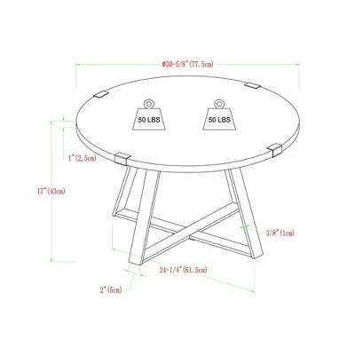 - Piece 1: Coffee Table: 31 Inches (W) x 17 Inches (H) x 31 Inches (D), Quantity 1