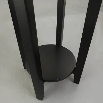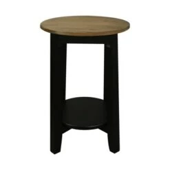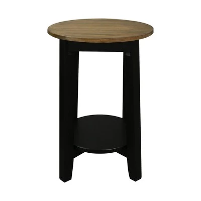 Inspired by our passion for connecting the timeless appeal of American Hardwoods with the trends of today, our Chamber Round End Table with Solid Red Oak Top provides space for bedtime essentials. Tabletop is made with 100% premium USA Red Oak. Spacious open lower shelf space increases your storage capability. Matte black leg finish accentuates forest gray circular top to showcase American Oak. Its compact construction is perfect for tight apartments, offices, living rooms, and more.