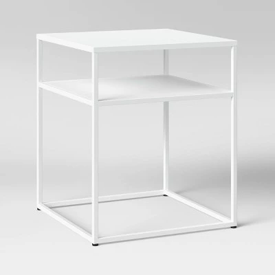 Add sleek, modern style to your space with this Glasgow Metal End Table from Project 62β’. Crafted from metal in a solid hue, this end table sports a clean silhouette and a rectangular tabletop for a sleek look that instantly elevates any setting in your home. The end table features a spacious tabletop to display your favorite decor, along with a lower shelf to provide additional storage space you’ll appreciate. Place it next to your sofa in your living room or alongside your chair to rest your book, cup of tea, small potted plant or a lamp.