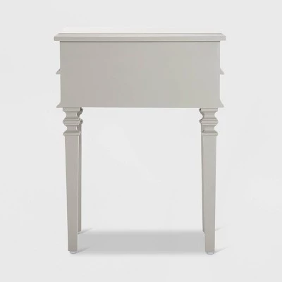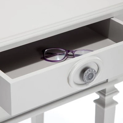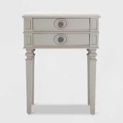 With two easy-open sliding drawers mounted inside the sturdy wooden end table, you will have all the room youβve been looking for in a bedside table for books, papers, or other personal items. The soft gray painted wood makes this rustic yet modern end table the perfect choice for the living room, bedroom, home office, or wherever you decide to place it. This rustic end table has the classic styling you want with the sturdy quality you need.