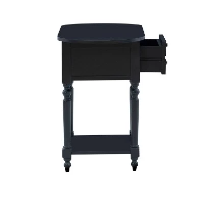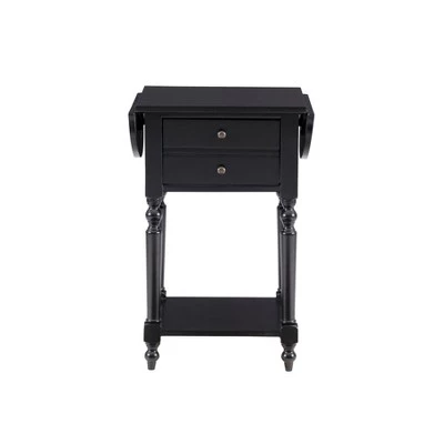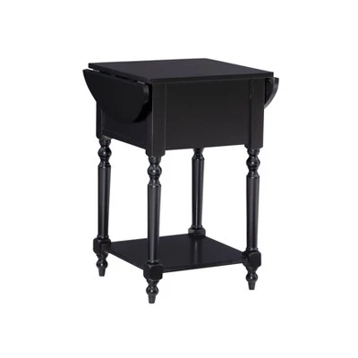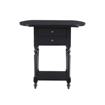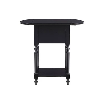 The Marco Dropleaf Table has it all – style, color, and function – to make it the perfect accent for any room in your home. The square table takes up minimal floor space but offers the added bonus of having a rounded dropleaf extension on each side that can easily be raised when you need more space. The double wooden supports of the dropleaf extensions make it a sturdy surface for daily use. A deep single drawer for storage has a faux double drawer detail and oil rubbed bronze knobs. A sleek finish, turned legs, and a bottom shelf complete the look.