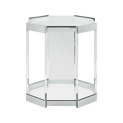 Add this octagon acrylic, metal & glass side table to your favorite room for a sleek, contemporary look. This side table has a clear tempered glass top and shelf with clear acrylic legs. To maintain, simply dry dust to keep this piece looking new. Adult assembly for this side table is required.