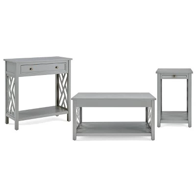 - Includes: 1 Console Table, 1 Coffee Table, 1 Accent Table