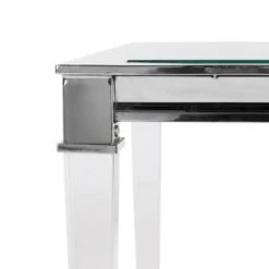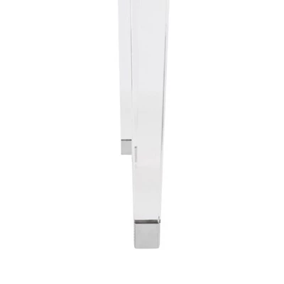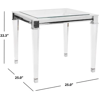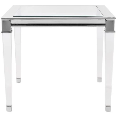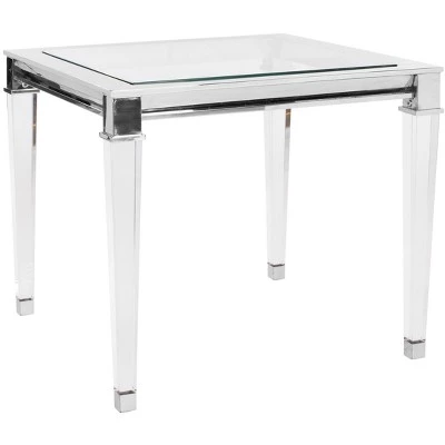 Inspired by furnishings in ParisΓ latest designer boutique hotel, the Charleston end table is a posh update of classic regency style. Its sleek glass top is supported by contemporary acrylic legs adorned with metallic detail with a modern chrome finish. Care Instructions: METAL CARE: Wipe spills immediately. Maintain with regular dusting. Clean with mild soap and water. Dry thoroughly and do not use a brass cleaner. ACRYLIC CARE: Blot up spills immediately. Use coasters on table tops under beverages. Use trivots or mats under hot dishes or cookware. Clean with warm water and dry surface immediately after cleaning. Do not use cleaners that contain acid such as bathroom cleaners, grout cleaners, and tile cleaners. Do not use abrasive cleaners in either dry or liquid forms. Use a cleaner and polish formulated for acrylic surfaces.