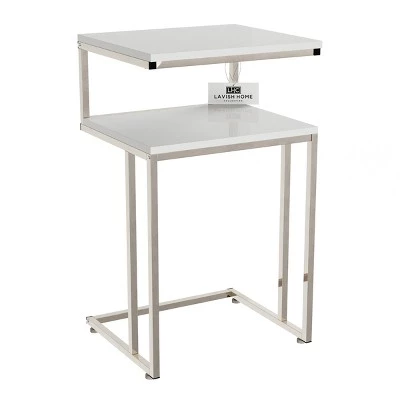 Organize your living room with this Two-Tier End Table from Hastings Home. This C-shaped side table is designed to sit next to your sofa, offering attractive and convenient storage for books, magazines, electronics, and other day-to-day items. The compact, space-saving design means it works just as well for storage in a small dorm as in a larger living room.