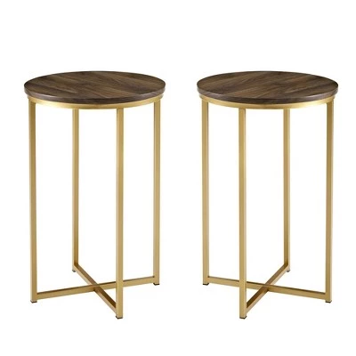 Add a splash of modern style to your living room with the Vivian Glam X-Leg Round Side Table Set by Saracina Home. Mixed materials and finishes make for an end table duo that will instantly glamourize your space, complement your dΓ©cor, and set the stage for drinks and snacks. The geometric, X-style legs contrast the round top surfaces and create contemporary, harmonious silhouettes. Stylish and practical, these circular accent tables also include caps on the metal legs to protect your flooring from wear and tear. Tie the room together by pairing these pieces with Saracina Homeβs matching coffee table.
