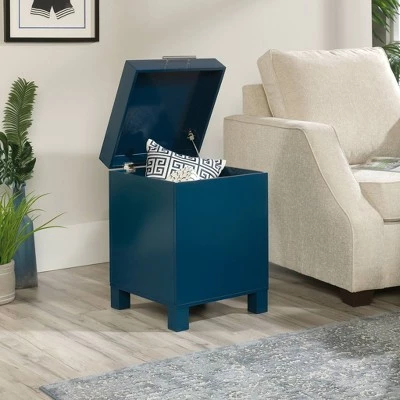 Style and functionality all in one! Add a simple touch of coastal-inspired style and design to any room in your home with this storage side table from the Vista Key collection. This stunning end table offers the perfect amount of surface space to accommodate all your couch-side necessities like an accent lamp, the TV remote, coasters and a refreshing ice-cold drink. Beneath the lift-up top is a concealed storage area that is ideal for stowing away items that you prefer not be seen lying around like magazines, books and blankets. You can find a place to conveniently store all your things. This trendy side table is finished on all sides for versatile placement throughout any room in your home β the living room, your office, or even in the dining room. It adds beautiful style no matter where it stands. Finished in Navy Blue and accented with charming hardware, this good-looking accent table is just what your home needs.