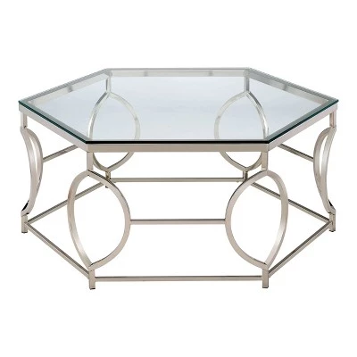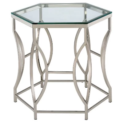 The HOMES: Inside + Out 2pc Elise Ring Accent Geometric Shape Table Set in Chrome is sure to become the new focal point of your home. Invite family and friends over to enjoy a nice cup of tea gathered around your new favorite set of furniture. Featuring a durable metal base with a metallic finish and uniquely shaped for added appeal, the beveled glass tabletops are crafted from 8mm tempered glass. The HOMES: Inside + Out 2pc Elise Ring Accent Geometric Shape Table Set in Chrome is complete with curved O-ring accents for a show-stopping finish.