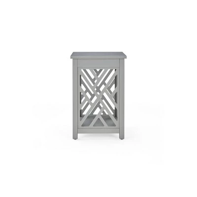 - End table dimensions: 15.75 inches W x 15.75 inches D x 23.75 inches H; shelf dimensions: 11.75 inches W x 11.75 inches D; tray shelf dimensions: 10 inches W x 11.75 inches D x .5 inches H