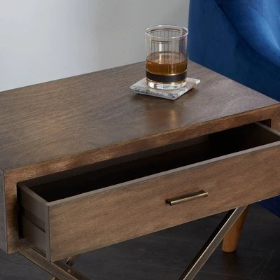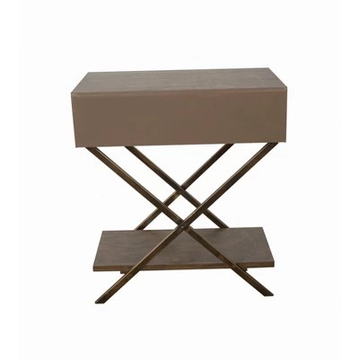 Sleek and charming with a hint of rustic flair, the Barrett X-Base One Drawer Side Table brings your space to life instantly! Crafted in a neutral tone with a contemporary X-base design, the Barrett sits stoically beside your accent chair, sofa or even in your entryway to announce its presence. The small storage drawer and shelf provide extra space for your belongings and the smooth 25″ wide top surface make room for your favorite accent lamp or vase of colorful flowers. Choose wisely, by choosing the Barrett to brighten your decor! Constructed of MDF and veneer and measures 23 W X 13.5 D X 25.5 H.