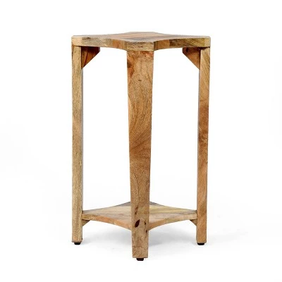 Give your plant the perfect indoor perch with an accent table of refined taste and versatile function. Featuring a lovely concave design supported by straight, sturdy legs, our accent table brings a sophisticated yet boho touch to your home, complemented by a handcrafted finish for a rustic look. This accent table is completed with an open shelf, giving you space and style to organize your items. Blending seamlessly with your existing decor, this table will bring out the best of your interior space.