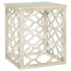 With its contemporary spin on traditional spindle style, this modern side table is a new classic. Its gently sculpted curves, reflected in its graceful tabletop pattern, are paired with a timeless antique brass finish ideal for any urban interior. Constructed from antique brass colored aluminum with a powder coating finish, this attention grabbing side table is able to support up to eighteen pounds. The Hydra round side table is the perfect choice for Contemporary, Mid-Century, or Modern style dΓ©cor.