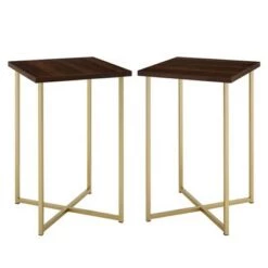 - These contemporary round accent tables features a polished brown wooden finish and a metallic gold iron finish