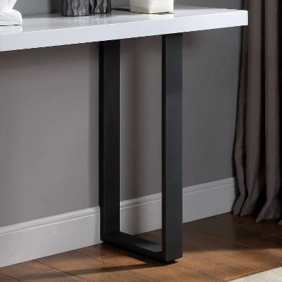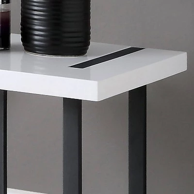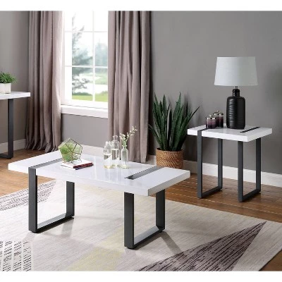 This coffee table and end table duo will make a terrific accent in your living space. Coming complete as a set, this is a contemporary end table and coffee table that is crafted from steel and MDF. The white tabletop makes a tremendous contrast with the dark steel base. Sturdy U-shaped legs make an open an airy feel for this set.
