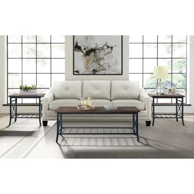The Picket House Furnishings Percy 3PC Occasional Set includes one coffee table and two end tables. With a warm finish and wood grain detailing, this set will enhance the overall look of your living room. Expertly crafted in acacia veneer, mdf, and metal for durability. All pieces feature metal lower shelving for storing your magazines, remotes, and dΓ©cor. This set is pleasing to the eye but also practical for daily use. Ships in one box for easy handling!