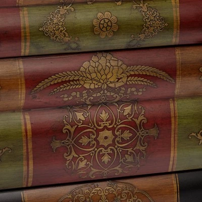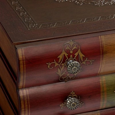 Classic and playful, this fancy traditional 3-drawer end table is deceiving. With a hand-painted chestnut finish with golden accents with embossed book details , this table has a bold design that is sure to stand out wherever it goes.