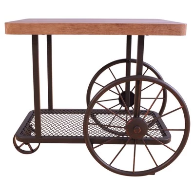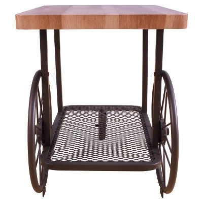 Add charming style to your home with the unique look of the Oak Gray End Table from Acme Furniture. This end table on wheels looks like a little cart, offering space for a lamp and other decor on the spacious tabletop. A lower shelf rests between the two large wheels, adding extra space for books, magazines and more. This metal end table won’t roll away or topple over, thanks to tabs on the wheels.