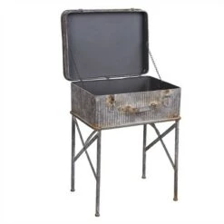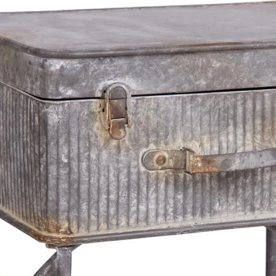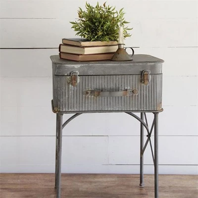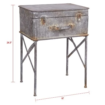 - Style: This metal side table features a fun vintage looking suitcase with a distressed finish. With its rustic style, this side table will fit perfectly with your favorite farmhouse inspired dΓ©cor.
