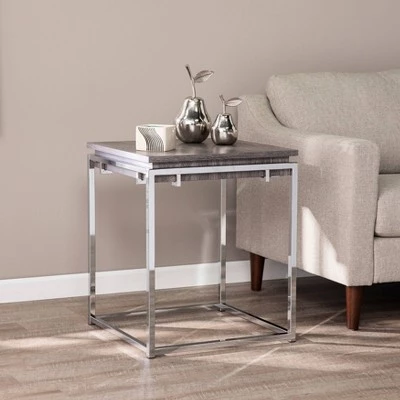 Double down on two-tone style with the Aiden Lane Lallstin Square End Table. A sleek, boxy frame crafts a simple, updated look, while the spacious square tabletop appears to float above. Stack magazines and a modern table lamp on top, or slide alongside you sofa to hold your morning cup of coffee and your latest read. With this contemporary end table as a convenient catch-all or chic plant stand, your living space gets a fresh update.