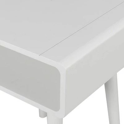 Embrace the Napa Valley essence and see your room take life with the Napa End Table with Shelf by Brighton Home. This end table will bring an attractive and soothing feel to any room with its curved edges and long tapered legs. The large tabletop also features an open cubby perfect to stow away entertainment essentials. With strong solid poplar wood legs and an MDF shelf finished with birch veneer, this table was engineered to last. Easy assembly requiring only 1 step. Complete the look with other pieces from the Napa Valley Collection from Brighton Home, each sold separately.