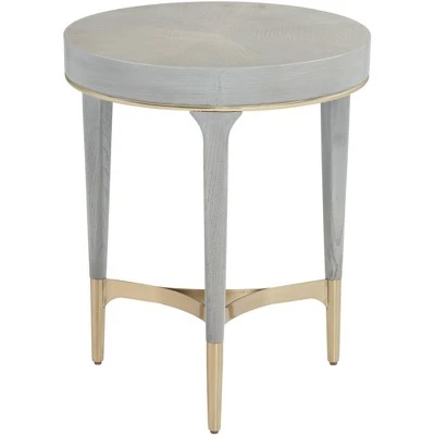 With a concrete look and a gray finish, this contemporary side table is accented with gold metal trim. It features a round table top and three sleek legs and is a glam look in a bedroom or seating area. From 55 Downing Street, this side table is the best room accessory.